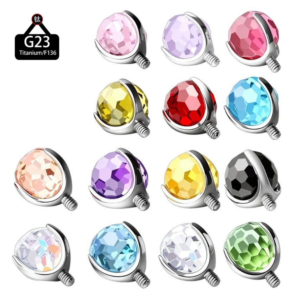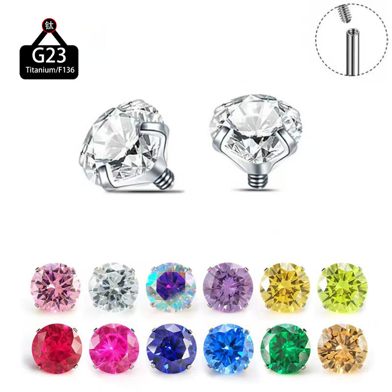 F-136钛合金锆石蹦迪球耳钉G23钛内螺纹锆石唇钉耳钉穿刺饰品头部