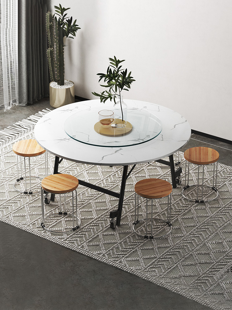 折叠桌子旋转圆盘家用小户型饭桌饭店圆桌移动圆餐桌商用实木餐桌