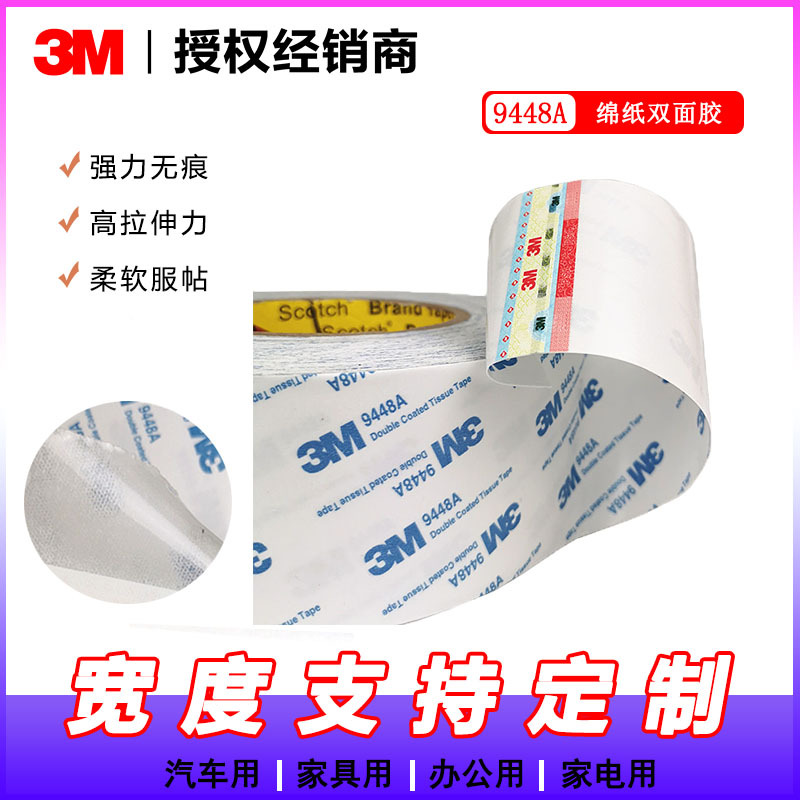 3M 9448a双面胶 耐高温 粘性强 无纺布透明超薄无痕胶带 未税