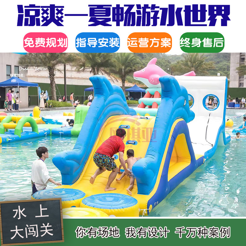 户外充气水上滑梯移动水上乐园设备冲关闯关支架游泳池水池厂家