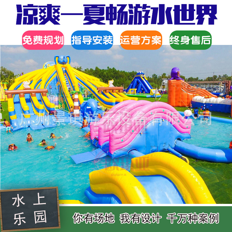 大型移动水上乐园设备充气水上滑梯儿童水池支架水池游泳池厂家