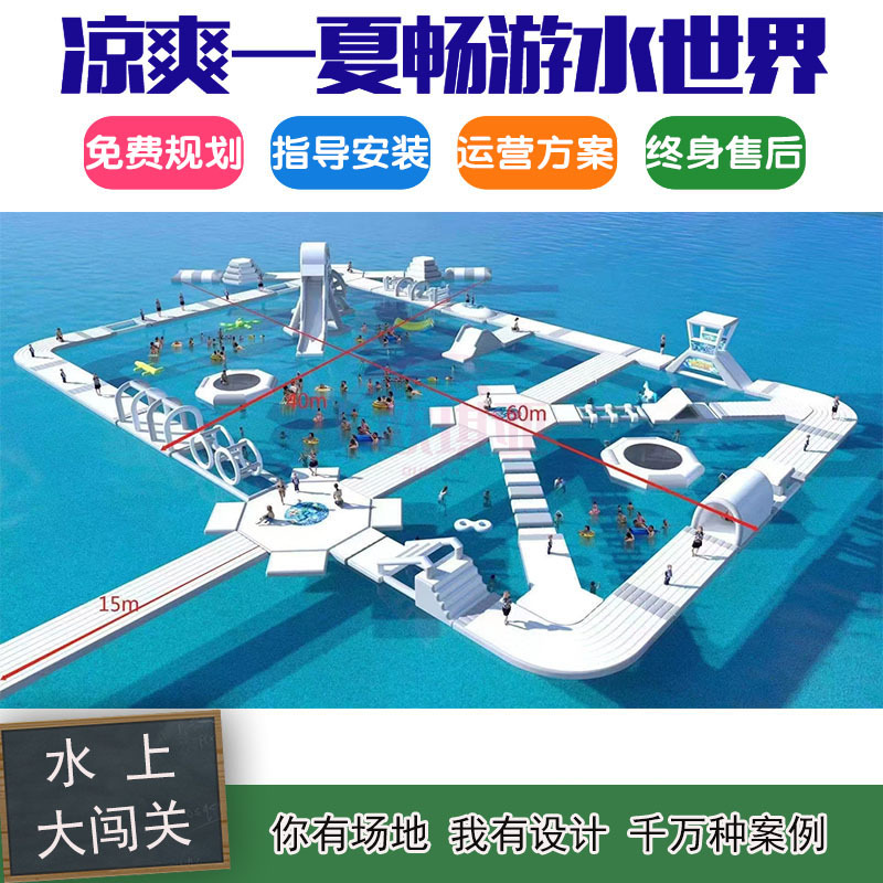 户外充气水上城堡湖面蹦床水上闯关充气大滑梯移动水上乐园厂家