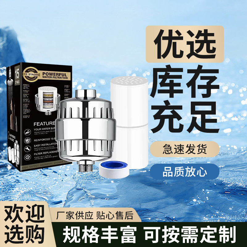跨境花洒15层过滤器净水器家用热水器前置花洒淋浴过滤滤芯批发