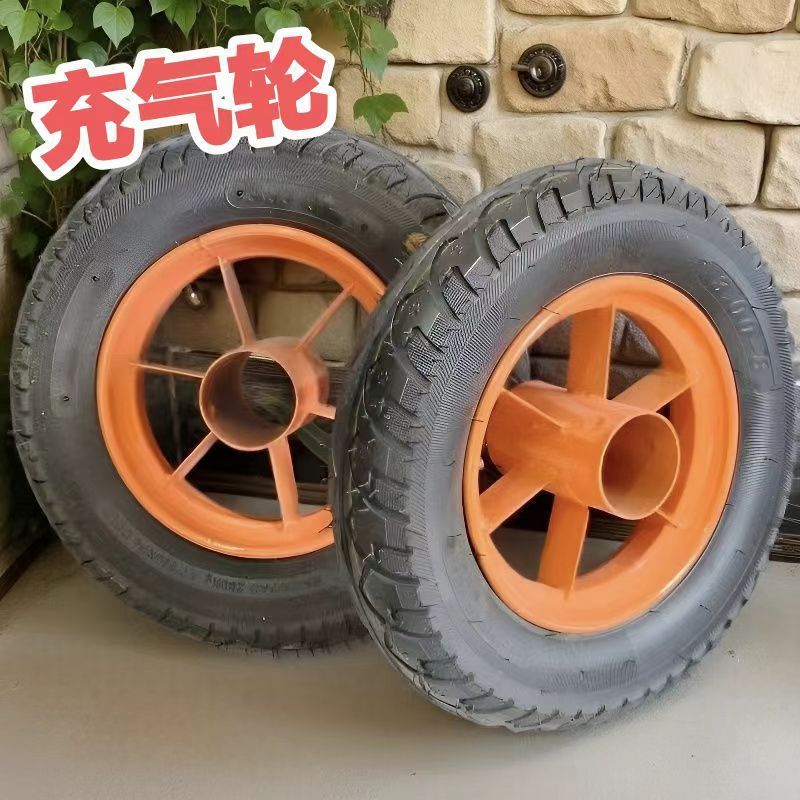 加厚橡胶实心轮充气轮胎车轱辘手推车轮子拉货车老虎车带轴车轮胎