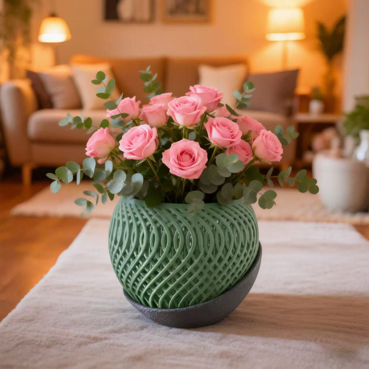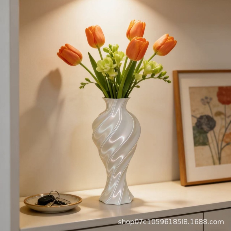 塑料3D打印丝绸干花瓶创意艺术插花装饰摆件北欧家居简约ins轻奢