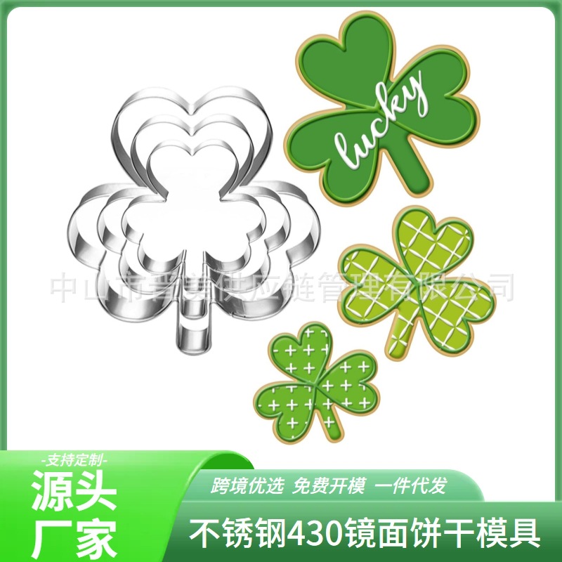 3件三叶草套装不锈钢饼干模具圣帕特里克四叶草糖霜烘焙工具跨境