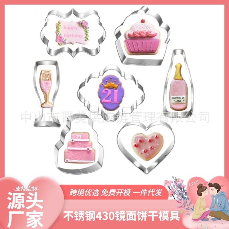 7件婚礼套装不锈钢饼干模具情人节派对糖霜按压式烘焙工具diy跨境