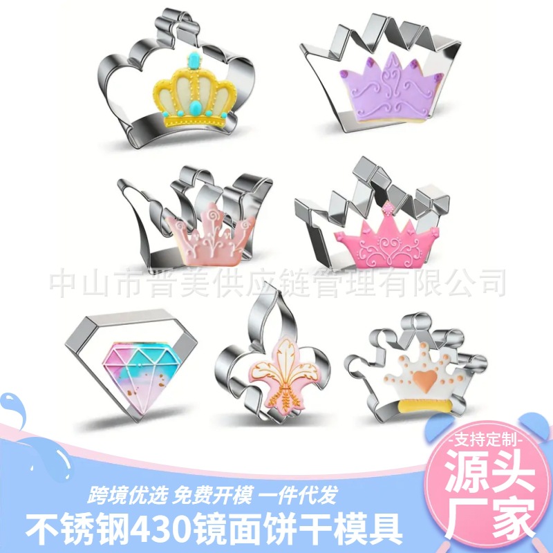 7件皇冠套装不锈钢饼干模具公主头冠系列王冠按压式烘焙工具跨境