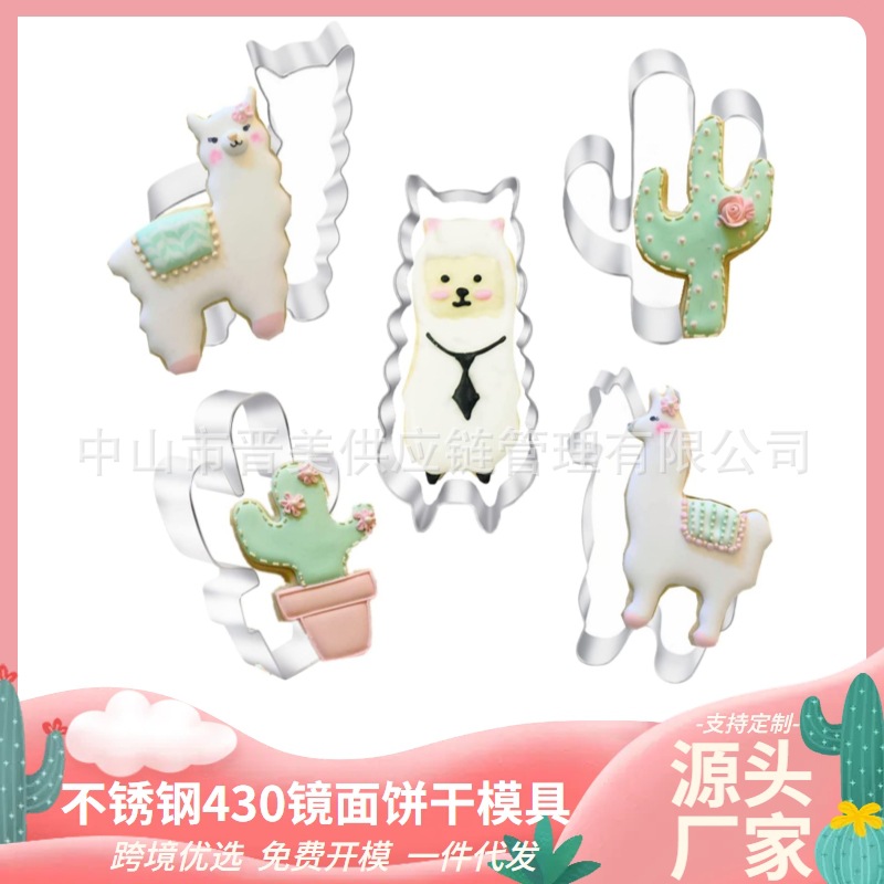 5件狂欢节套装不锈钢饼干模具羊驼系列曲奇按压式烘焙工具diy跨境