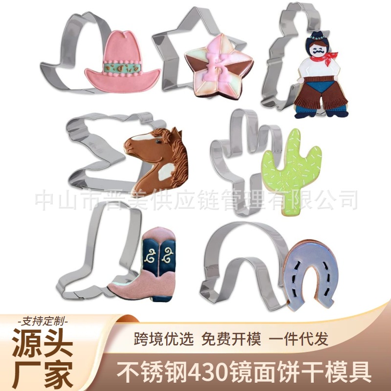 7件套装西部牛仔不锈钢饼干模具乡村派对靴子按压式烘焙工具跨境