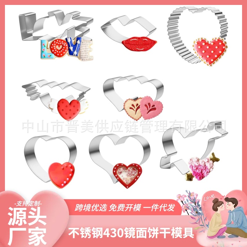 8件套装LOVE不锈钢饼干模具情人节系列糖霜按压式烘焙工具diy跨境