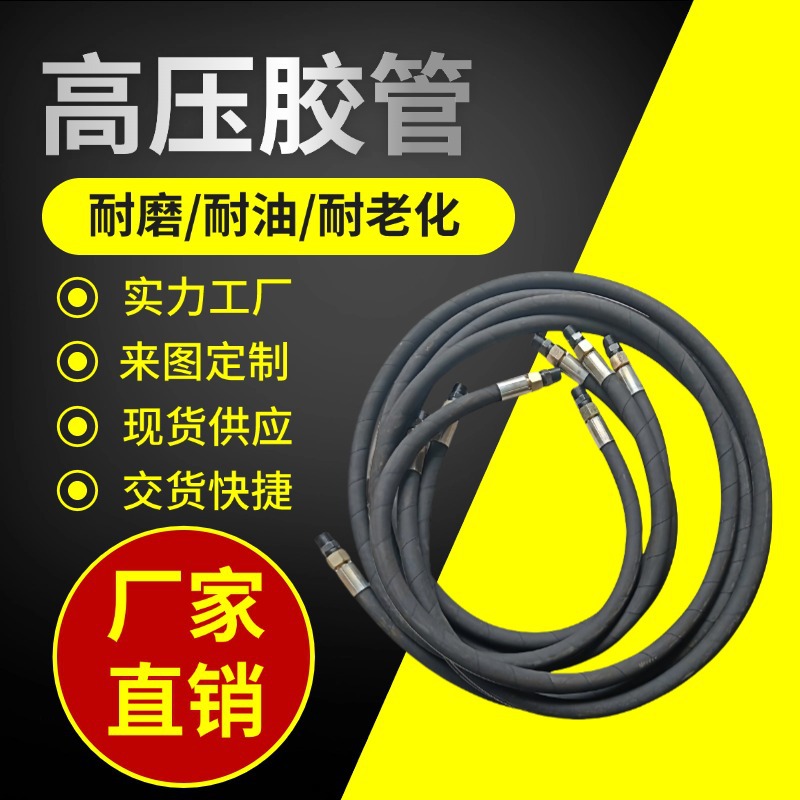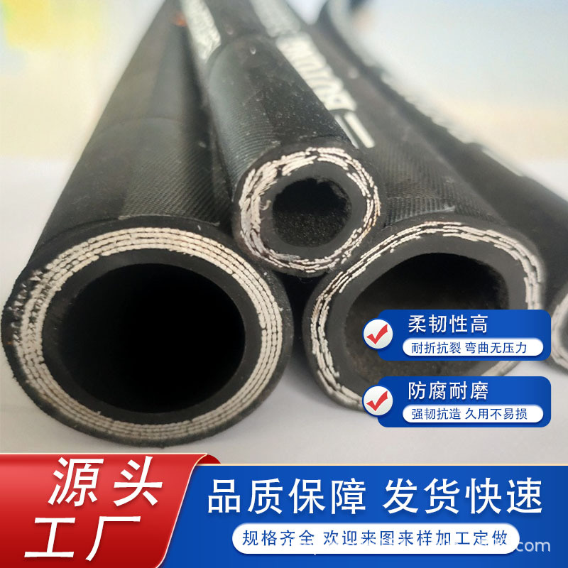 高压钢丝胶管橡胶软管厂家 扣压式液压胶管总成 防爆洗车机胶管