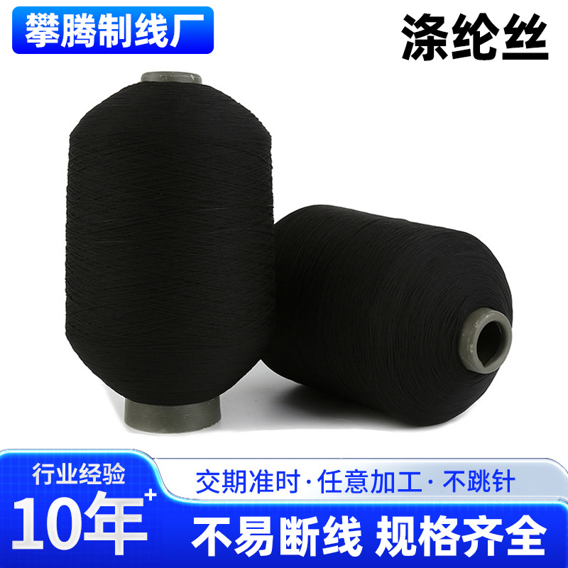厂家供应涤纶丝 300D高弹涤纶丝黑白色纺网络丝涤纶网络丝批发