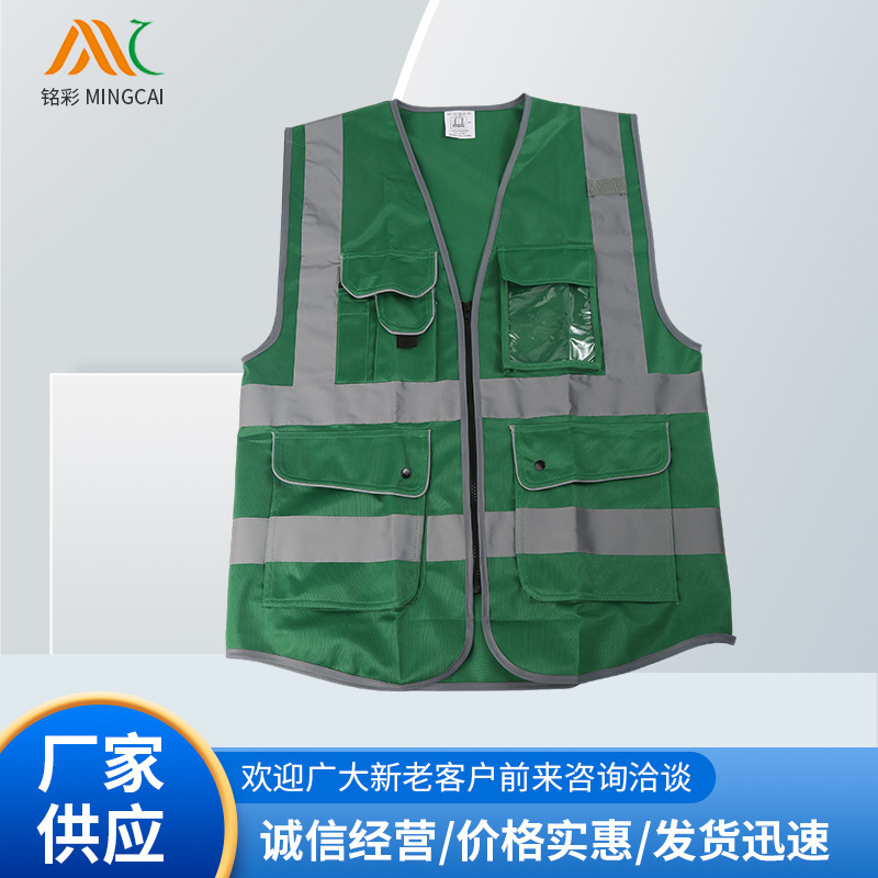 反光安全背心马甲反光衣绿马甲交通工地施工多口袋服骑行反光服