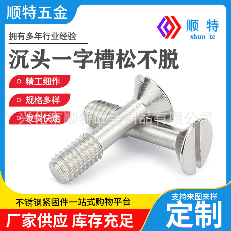 304不锈钢 一字槽沉头松不脱GB948 平头不脱出螺钉半牙螺丝 M3-M8