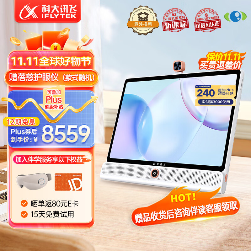 科大讯飞AI学习机LUMIE10 Pro (8+256GB)星火大模型 幼小初高全龄