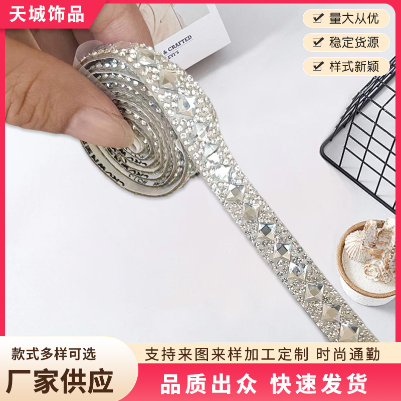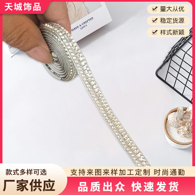 新款玻璃水钻自粘带水钻条个性DIY自粘钻链服装辅料箱包饰品配件