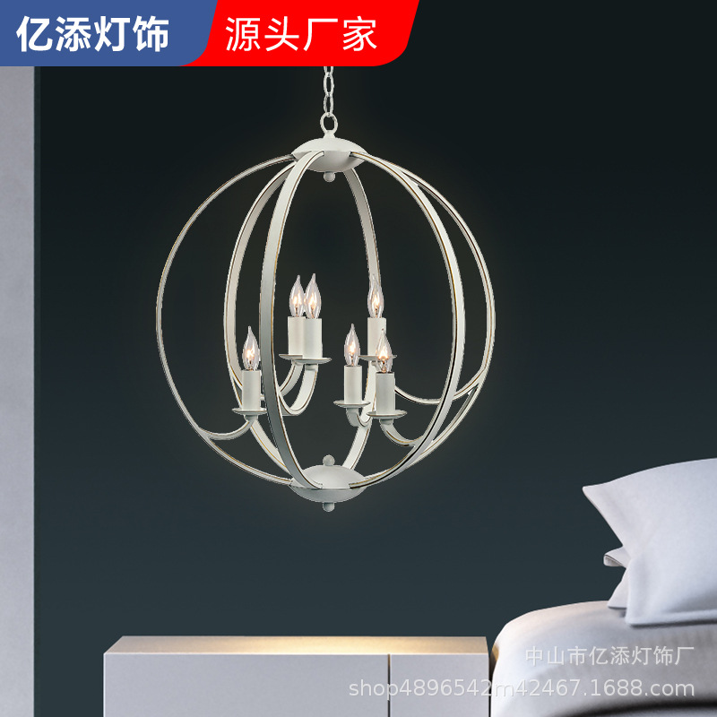 亚马逊跨境餐厅吊灯美式复古工业风吊灯圆球铁艺客厅餐厅卧室大厅