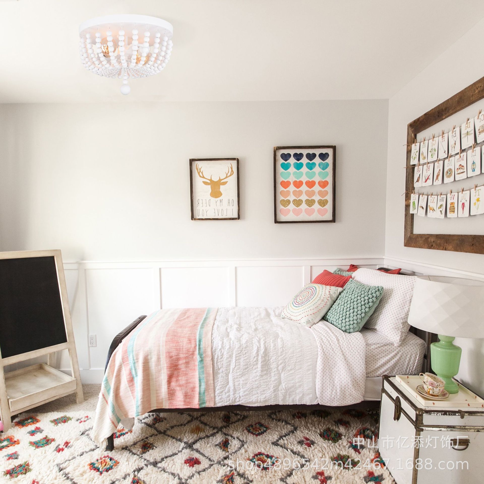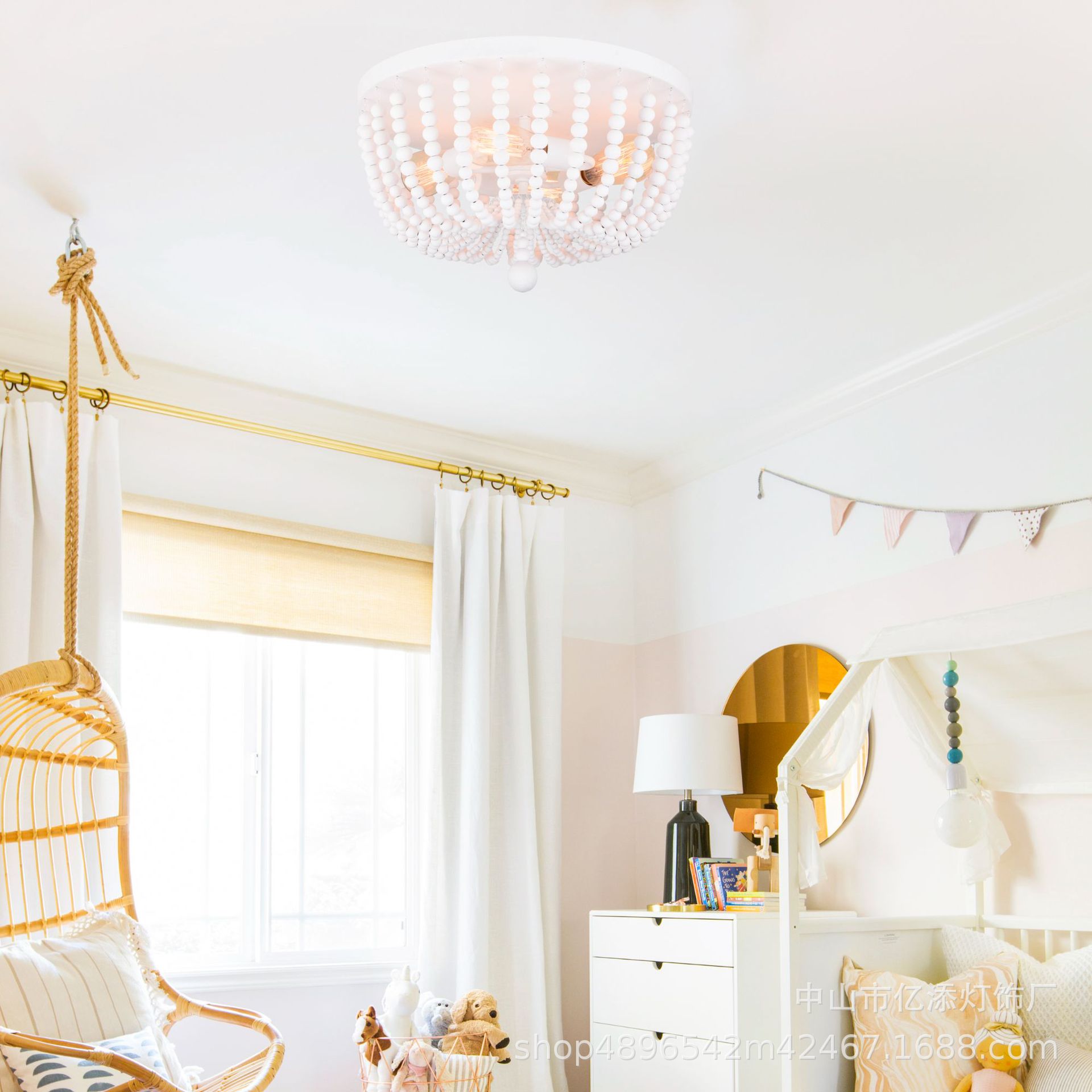 亚马逊新款美式复古吸顶灯白木珠客厅餐厅公主卧室灯田园风格灯具