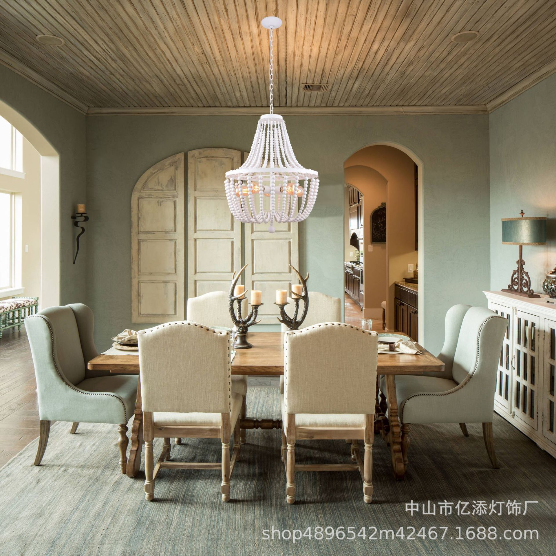 跨境专供美式田园乡村风格吊灯法式公主房灯具白木珠客厅餐厅灯饰