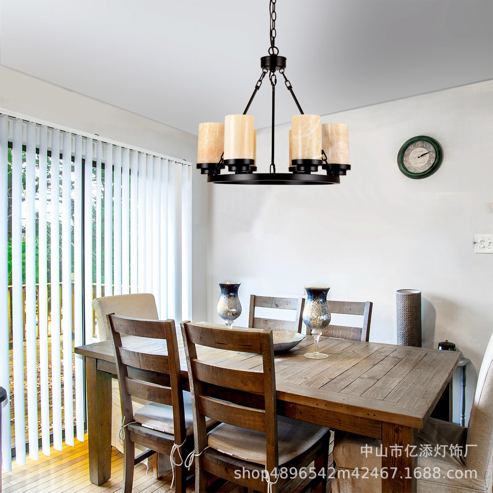 亚马逊跨境云石吊灯后现代简约餐厅卧室服装店创意吊灯圆形蜡烛灯