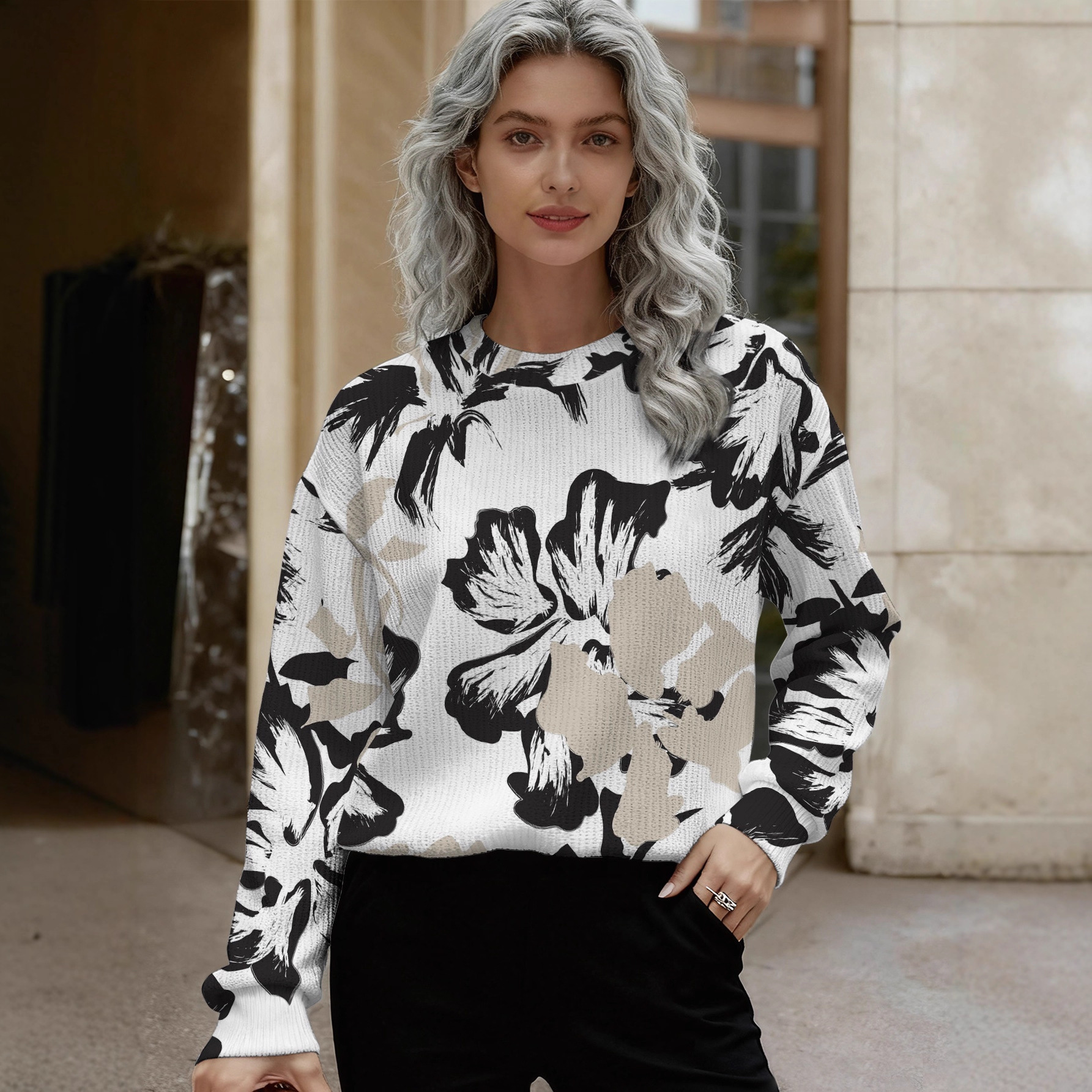 2025秋季跨境3D数码印花女士衣图案套头毛衣休闲长袖针织上衣POD