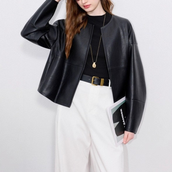 2025秋季新款皮衣PU外套荔枝纹黑色宽松老钱飞行夹克短款女上衣
