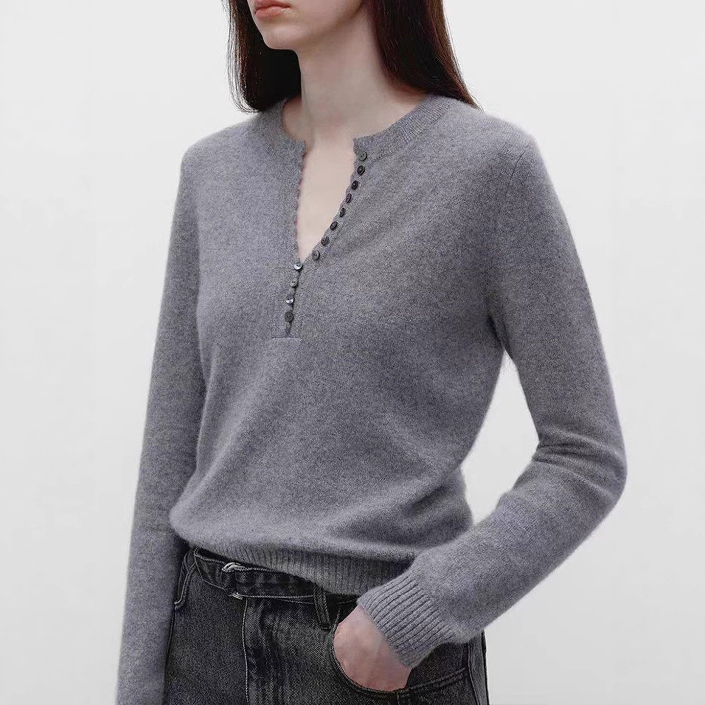 鄂X多斯文淇同款大牌明星都在穿25早秋格雷系半开圆领针织打底衫