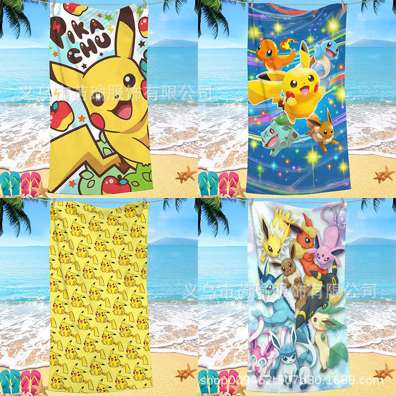 欧美跨境数码印花宝可梦皮卡丘口袋妖怪超细纤维沙滩浴巾沙滩巾