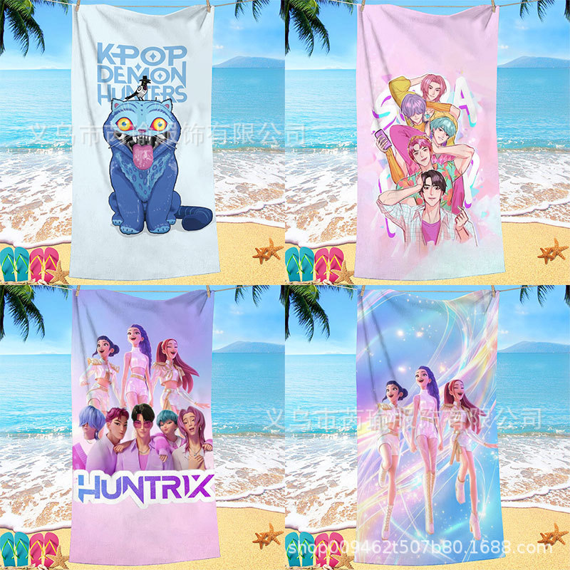亚马逊跨境猎魔女团速干浴巾卡通海边吸水毛巾kpop猎魔女团沙滩巾