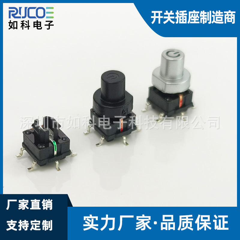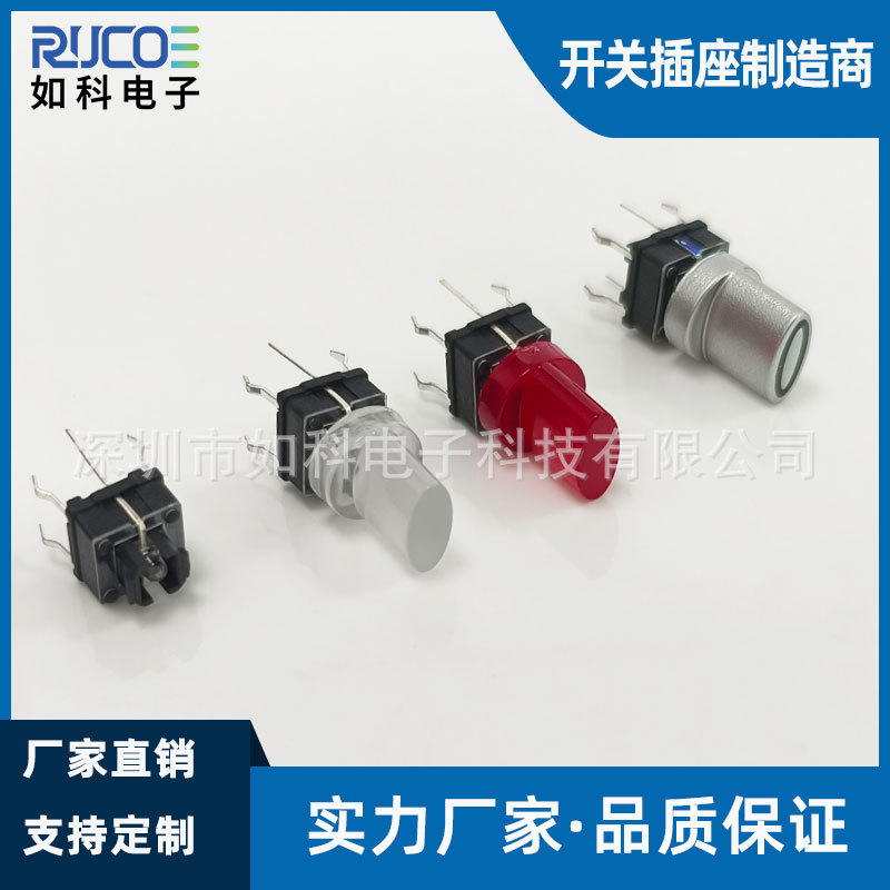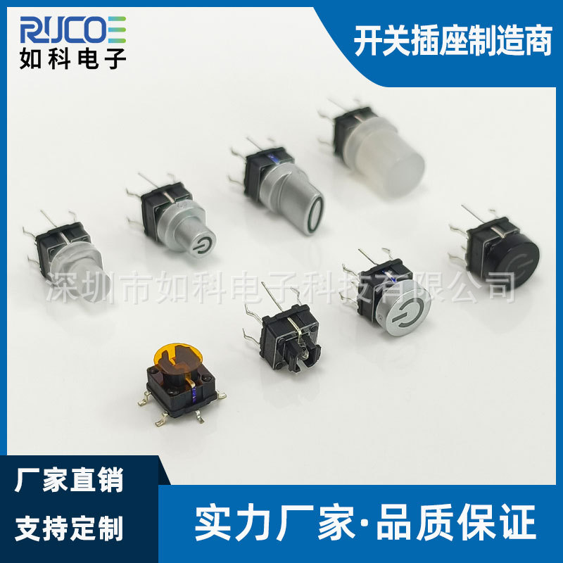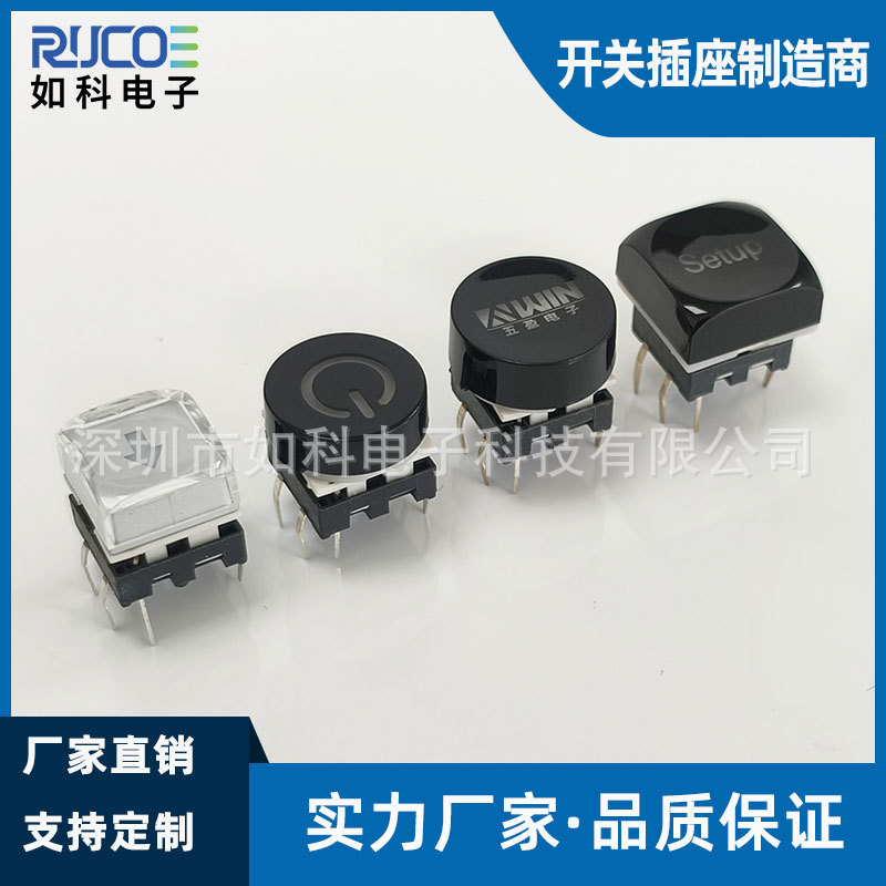 如科电子TS16系列7x7mm带灯轻触开关 黑色银色镭雕按键多色可选
