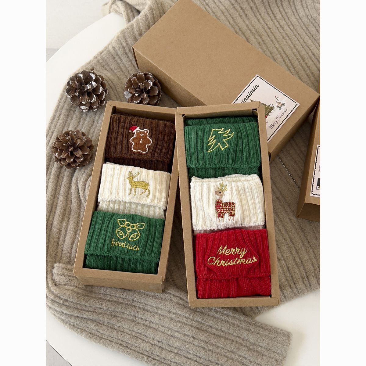 圣诞袜子秋冬个性中筒袜红色加厚新年棉袜可爱刺绣卡通圣诞礼物