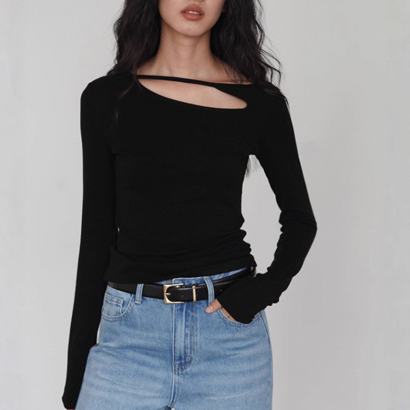 EIGHTHMONTH 红色单侧挖空长袖上衣女设计感小众春季显瘦打底T恤