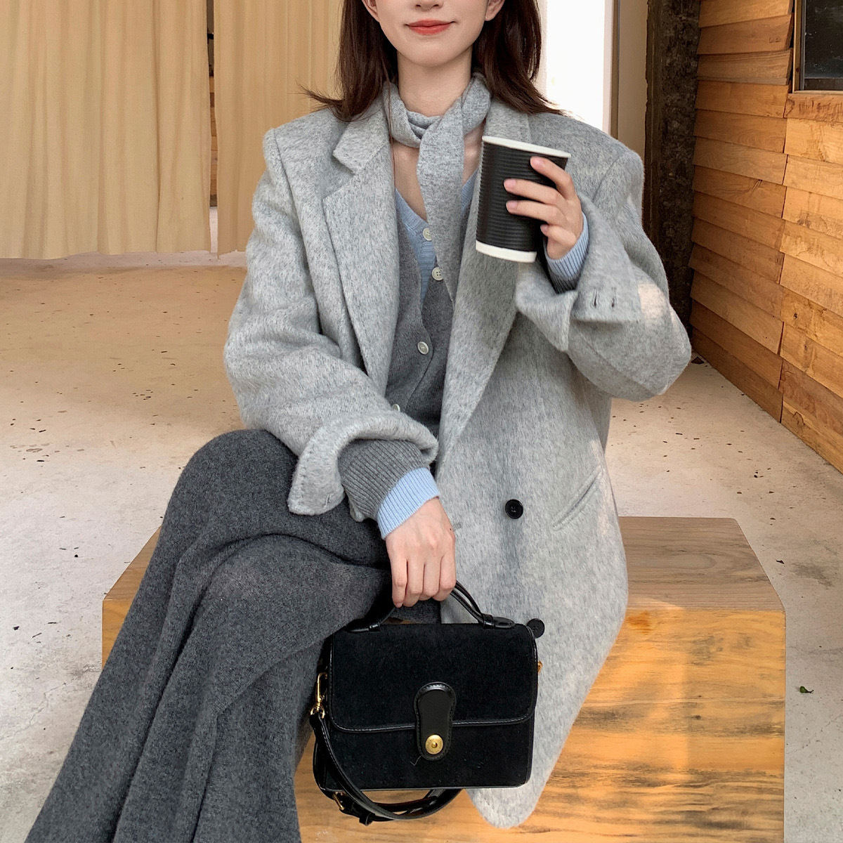 跨境欧美2025秋冬新款女装亚马逊气质优雅立领纽扣长袖毛呢外套