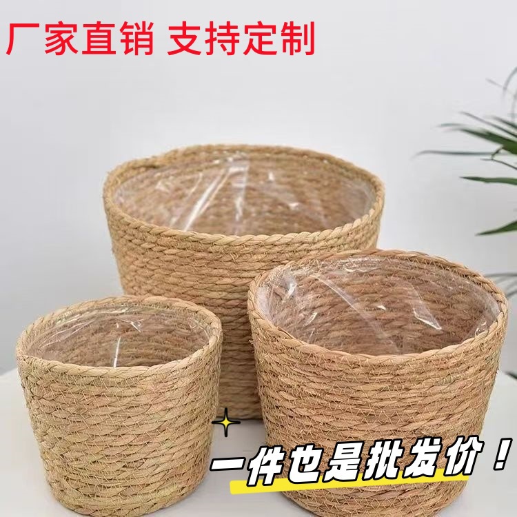 跨境草编花篮套藤编手工编织客厅插干鲜花绿植装饰摆件家居花盆