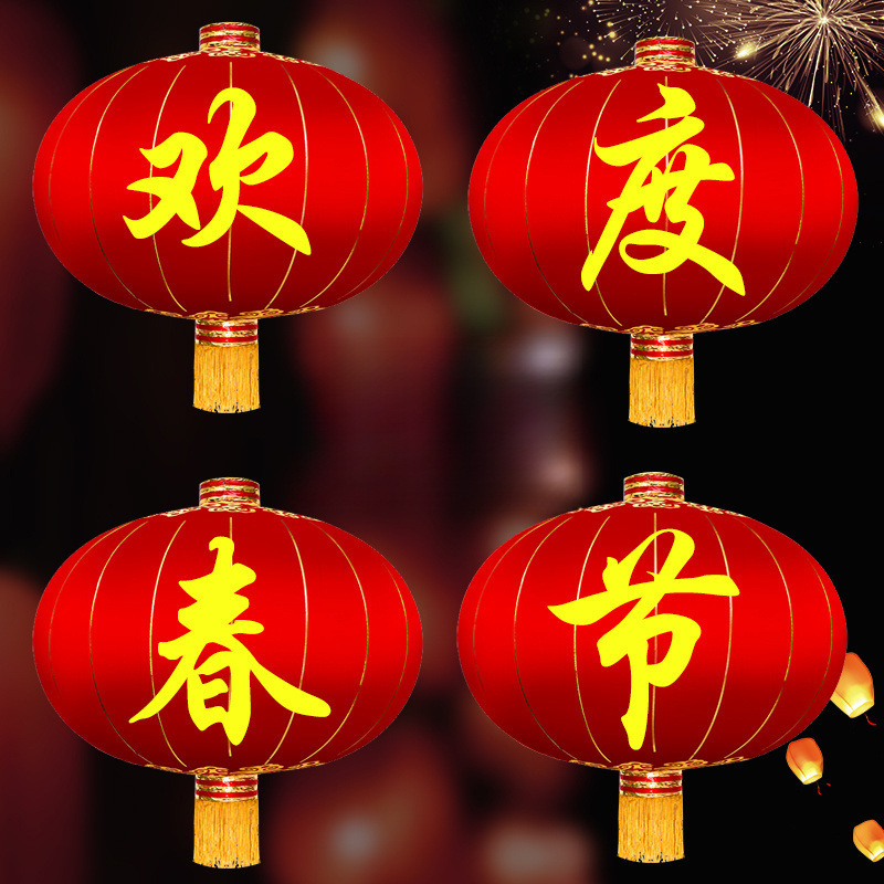 欢度春节灯笼大门口绸布铁口大型大号户外防水防晒佳节新年红灯笼