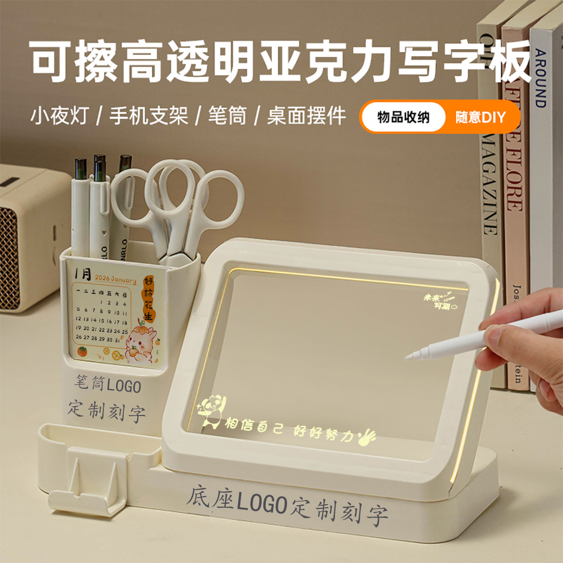 创意日历笔筒小夜灯生日礼物学生儿童励志摆件写字板公司LOGO