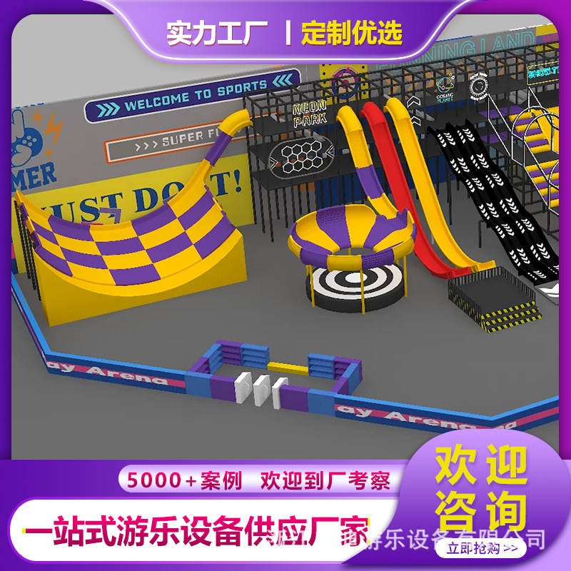 大型室内新型矩阵滑梯乐园蹦床潮玩馆回旋冲天牛角飞跃滑梯游乐场