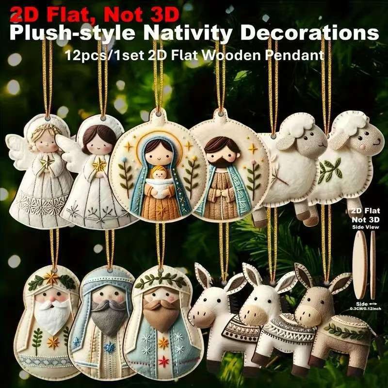 24件套圣诞树装饰品悬挂天使装饰圣诞树壁炉木制天使装饰圣诞节