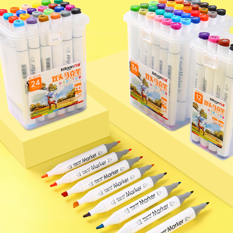 百通双头马克笔36色油性笔手绘设计套装绘画儿童彩色笔动漫美术笔