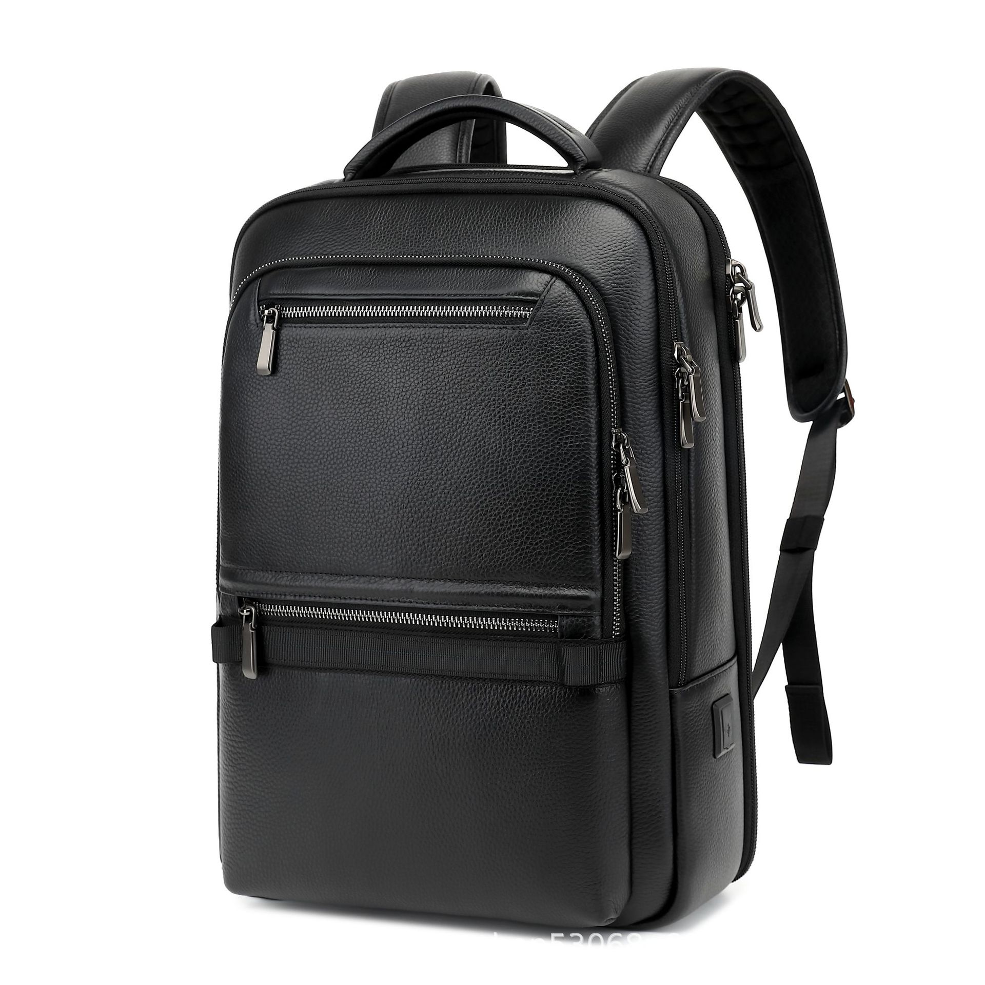 新款商务出行高质量植柔牛皮多功能真皮双肩包