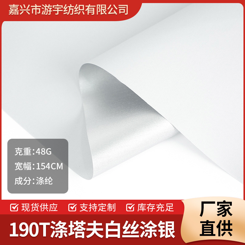工厂现货190T涤塔夫白丝涂银防水车罩遮阳隔热汽车罩窗帘面料