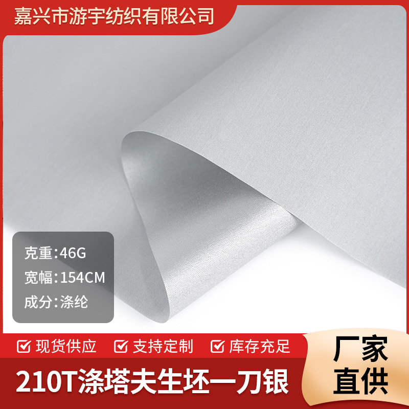 工厂现货190T涤塔夫生坯一刀银涂银涤纶布料天幕遮阳防尘车罩