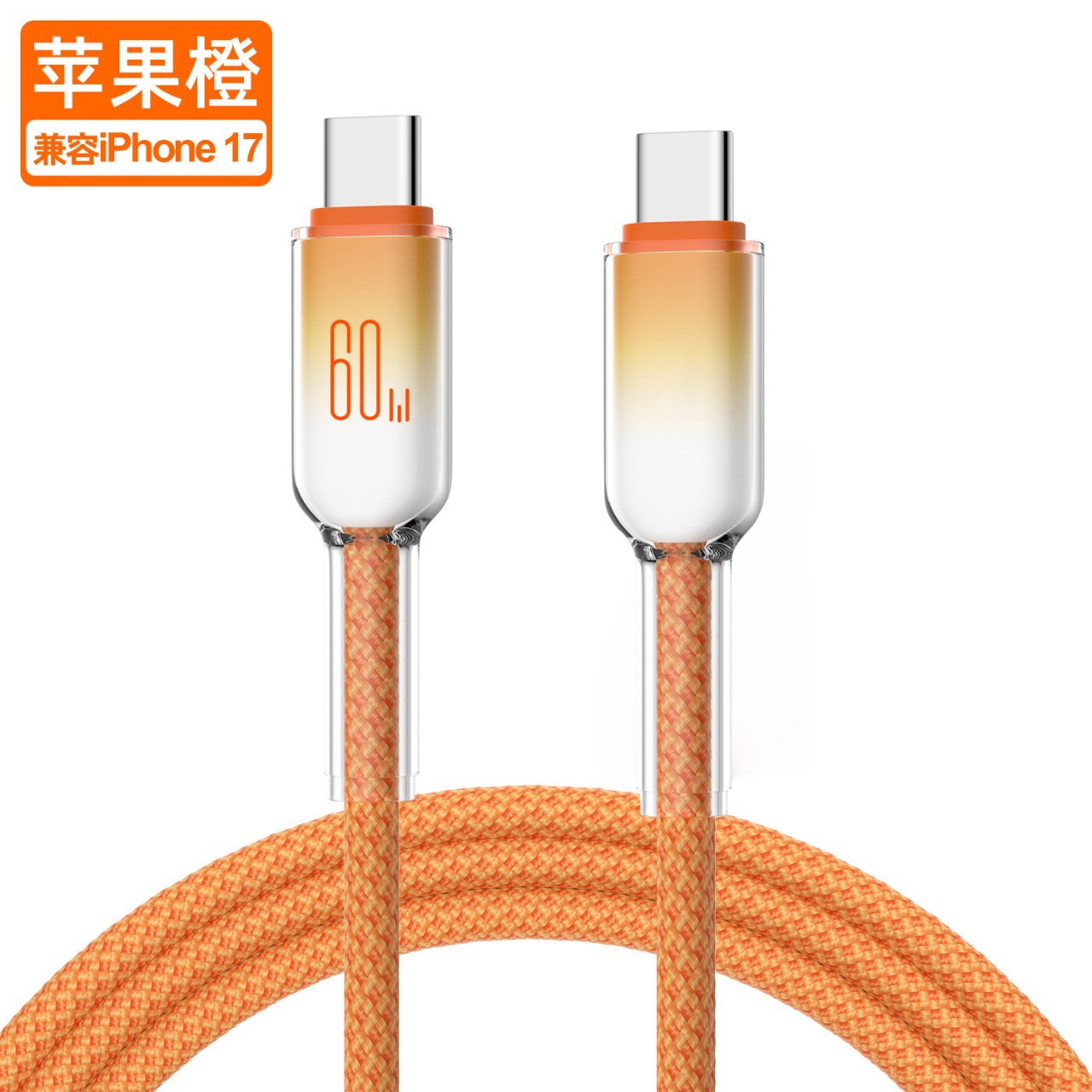渐变透明晶透数据线PD27W适用苹果15/16手机60W双Typec华为充电线