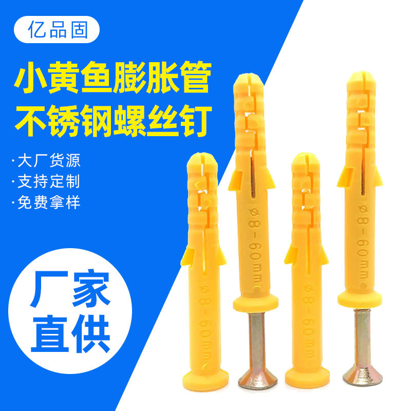 小黄鱼塑料胀钉M6-M8尼龙膨胀螺栓锚栓墙塞自攻螺丝胶塞套装
