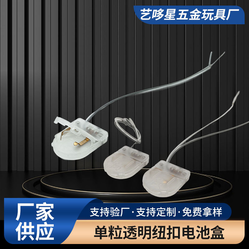 透明纽扣电池盒单粒装电池座带开关带线一节扁平翻盖纽扣电池盒