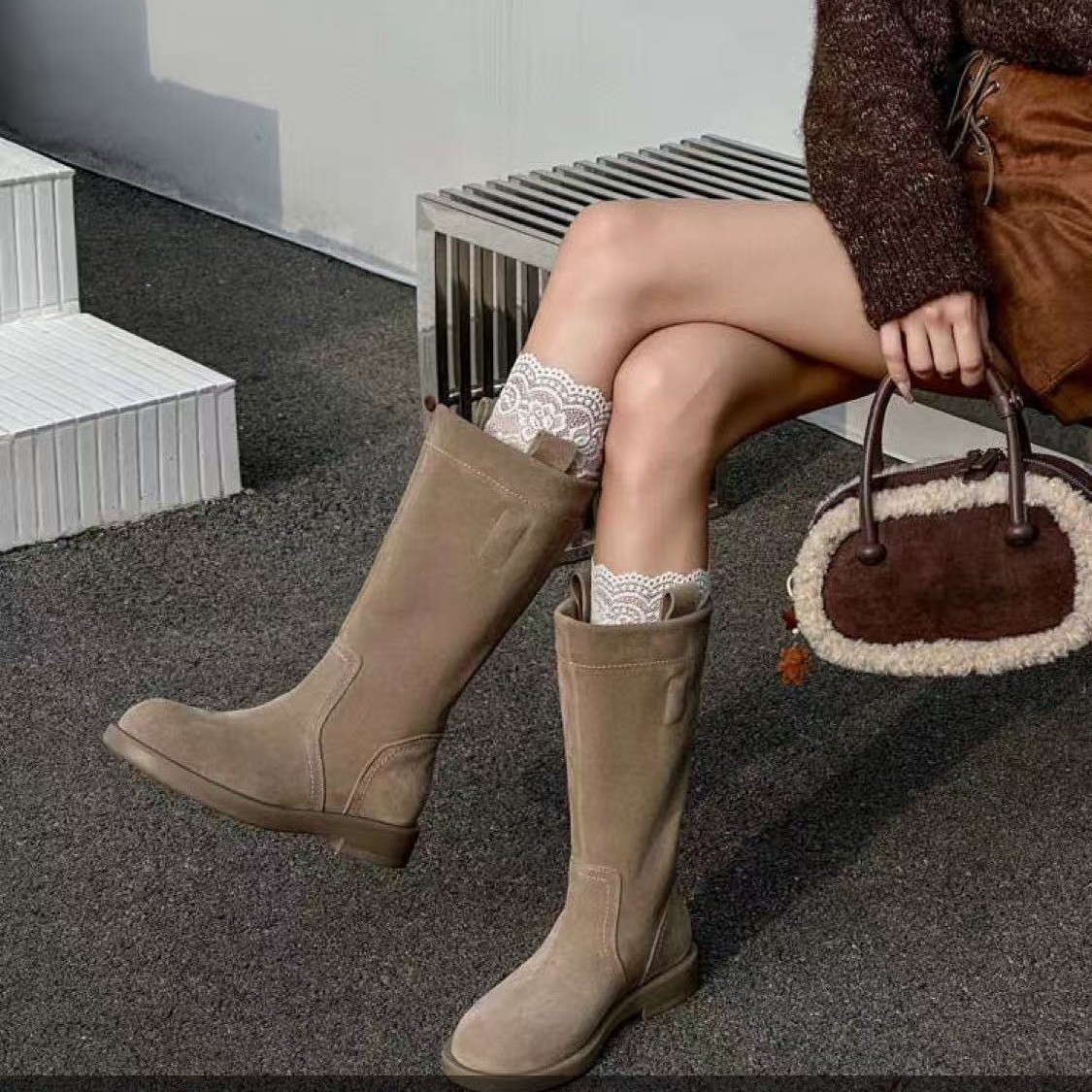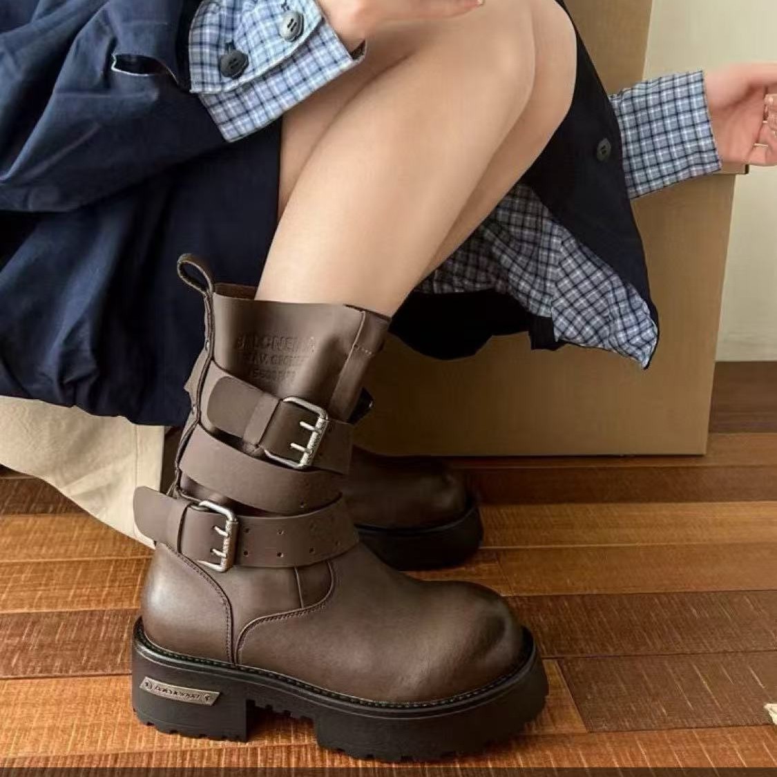莱熙妮马丁靴女做旧2025秋季新款复古西部牛仔靴真皮厚底英伦风
