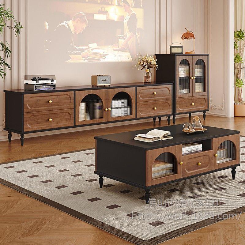 中古电视柜茶几组合轻奢现代简约客厅家用小户型奶油风落地电视柜