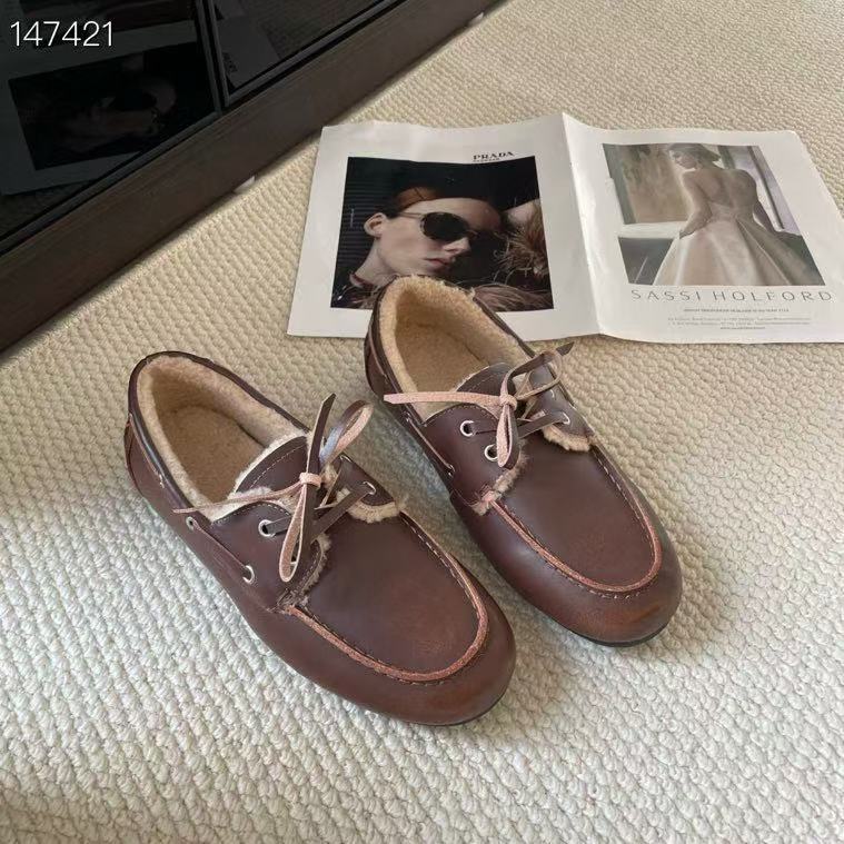 佩琪2025年秋冬加绒圆头低跟平底单鞋一脚蹬金属扣时装牛皮女鞋