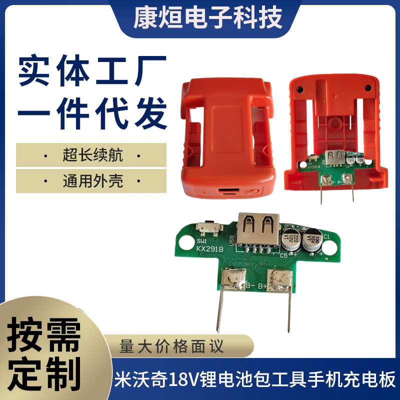 米沃奇电动工具18V锂电池 外挂式手机充电PCBA板锂电池容量大功率
